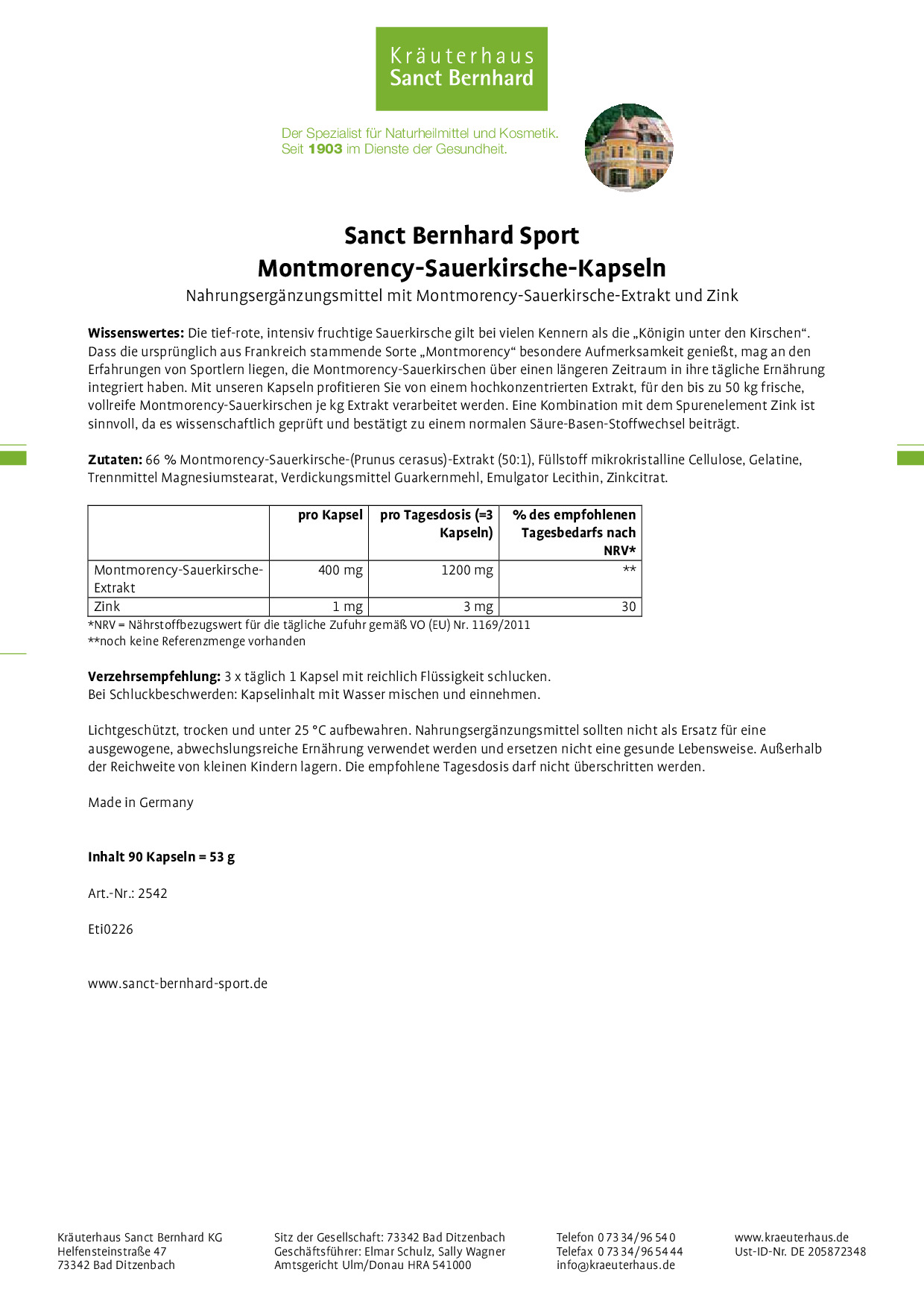 Deine Gesundheit und nicht zuletzt Deine Fitness liegt uns am Herzen. Daher entwickeln wir an unserem Stammsitz, dem "Kräuterhaus Sanct Bernhard" in Bad Ditzenbach auf der Schwäbischen Alb, ein über 900 Artikel umfassendes Sortiment verschiedener Naturheilmittel, Körperpflegeprodukte und Kosmetik.